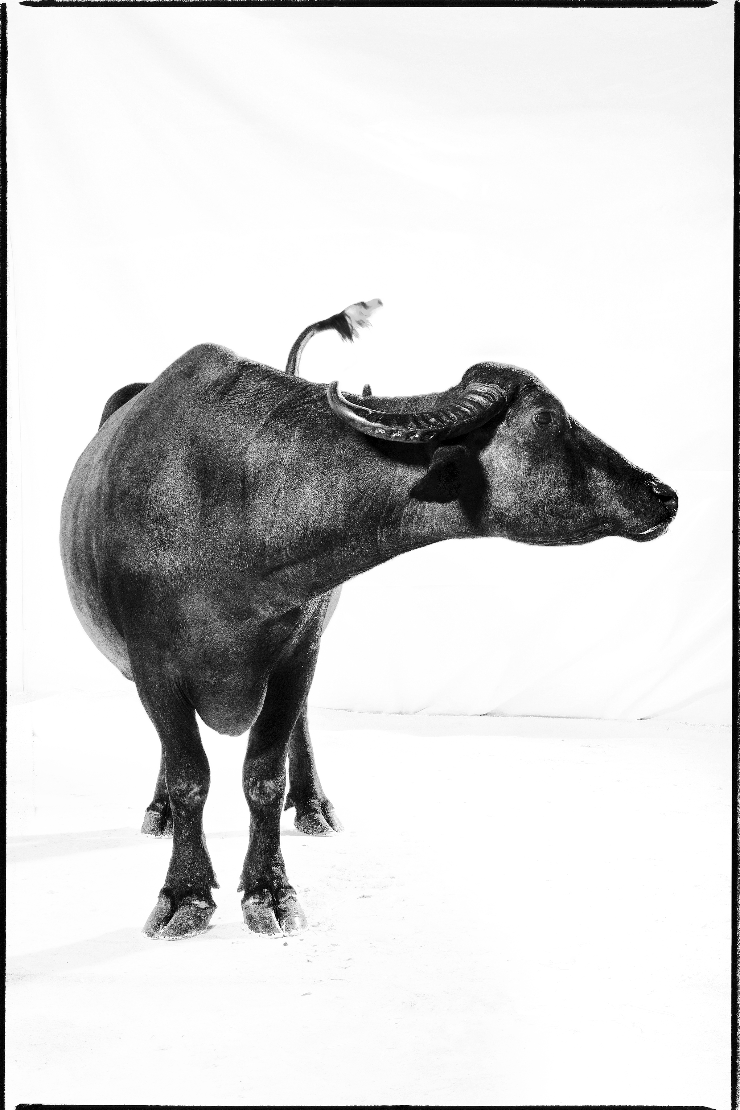 Bufale in enormi ritratti in bianco e nero, quasi in dimensione reale, interpretate come Regine produttrici dell’oro bianco, riprese in primissi...