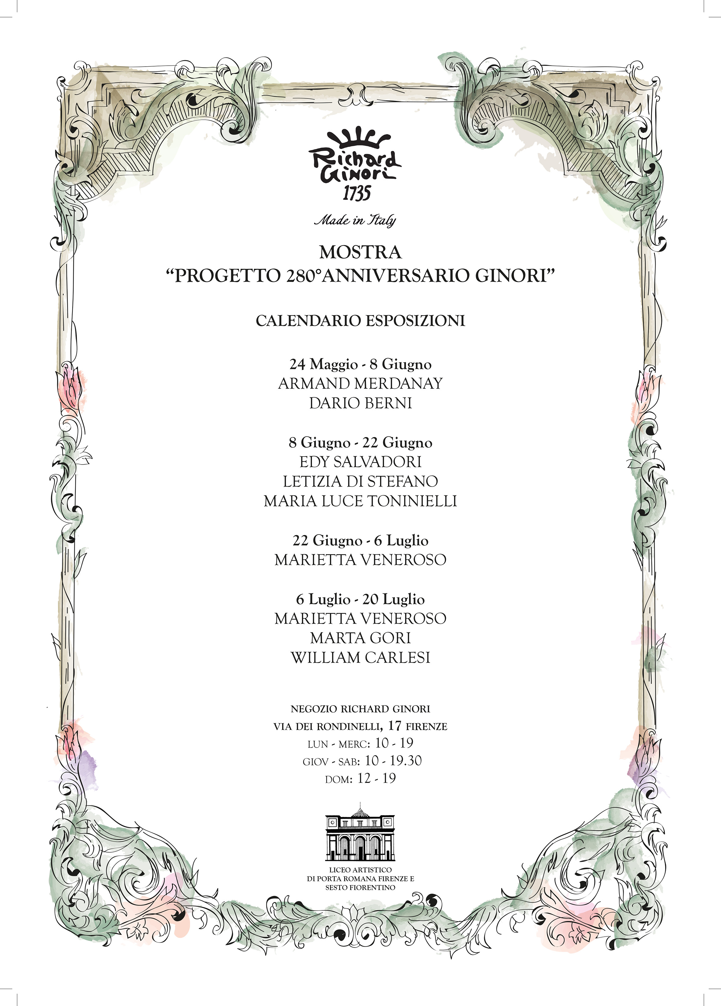 Sarà ospitata nel giardino d’inverno del negozio Richard Ginori in via de’ Rondinelli 17/r a Firenze, da martedì 24 maggio ... -