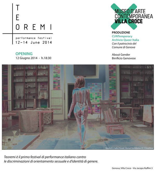 Teoremi è il primo festival di performance italiano contro le discriminazioni di orientamento sessuale e d’identità di genere.&nbs... -