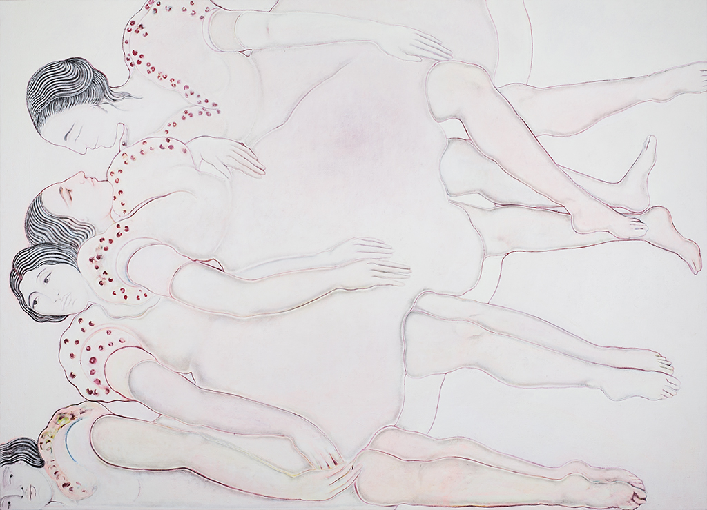 Forme essenziali e sinuose, linee morbide, figure sospese che si intrecciano e vivono le une sulle altre, caratterizzate da tinte tenui, chiare, lumin... -