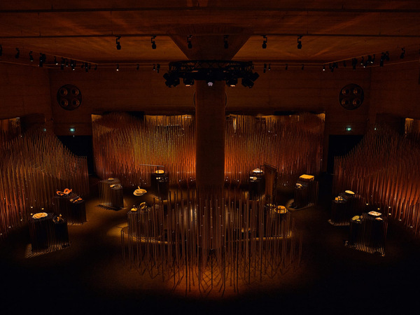 L'interno della galleria principale con strutture che richiamano il canneto, progettate dallo studio WHY Architecture. When Apricots Blossom, Milano Design Week 2026. Su gentile concessione di ACDF