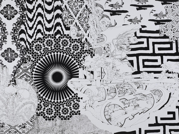 L’opera Metempsychosis, Circle Song Seven arricchisce la collezione della Galleria con un’espressione pittorica fibrillante, che rappresenta il microcosmo ironico e surreale di un artista che trasforma il segno grafico in un linguaggio visivo globale, che condensa in una bidimensionalità monocromatica l’invadenza consumistica dell’iconografia postmoderna.