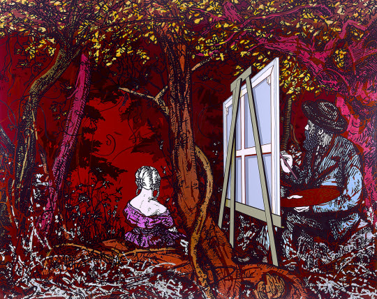 In “Argentum Nebula” alcuni grandi dipinti a tecnica mista su tela di lino sono exempladella particolare sintesi di figurazione e ast... -