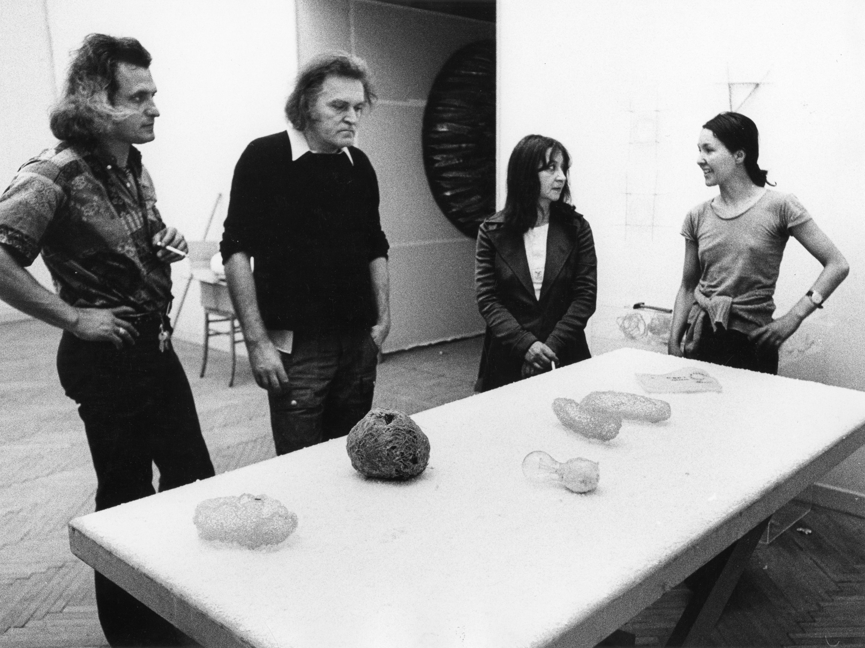 Marisa Merz - ritratto con Mario, Eliseo Mattiacci e Michelle Coudray, Quadriennale di Roma 1973 | Foto di Elisabetta Catalano | Courtesy Fondazione MAXXI