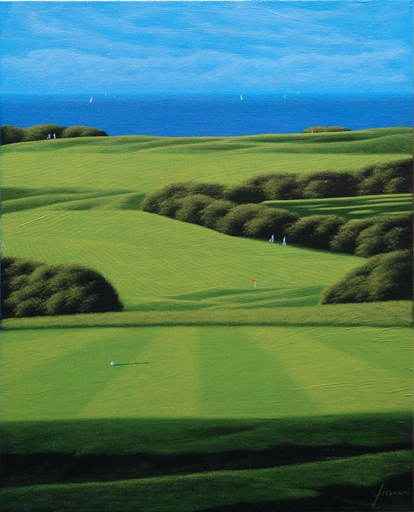 Il pittore saviglianese si presenta con le "opposizioni" (schiene), i pic-nic, i green , le marine e cinque tele dedicate allo sport: polo, tennis, go...