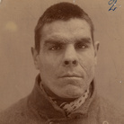 • Ritratto di criminale atavico. L’iscrizione a tergo della fotografia riporta il reato: “Uccisore della moglie dormiente con tre colpi di scure nella bocca per gelosia. Condannato a 27 anni.” | Fotografo non identificato, Stampa all'albumina, Fine XIX inizio XX secolo