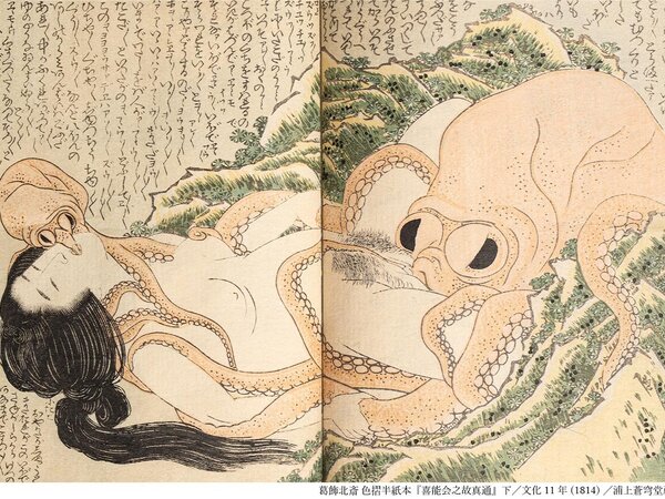 • Katsushika Hokusai, Il sogno della moglie del pescatore (Tako to ama), 1814, xilografia