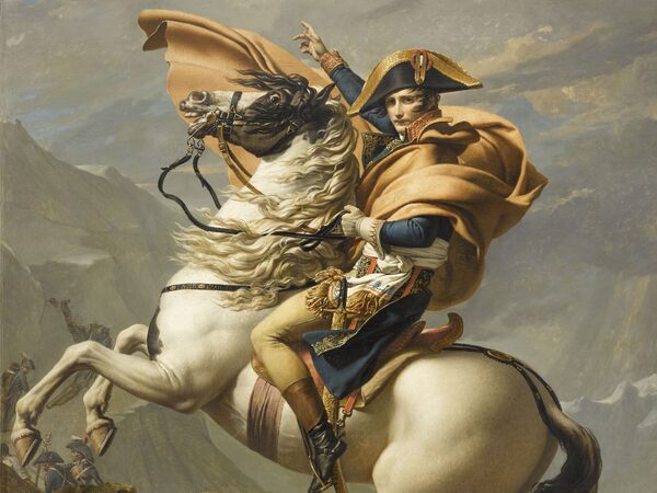 Jacques-Louis David, Bonaparte valica le Alpi al Gran San Bernardo © Grand Palais Rmn (musei dei castelli di Malmaison e di Bois-Préau), photo Franck Raux