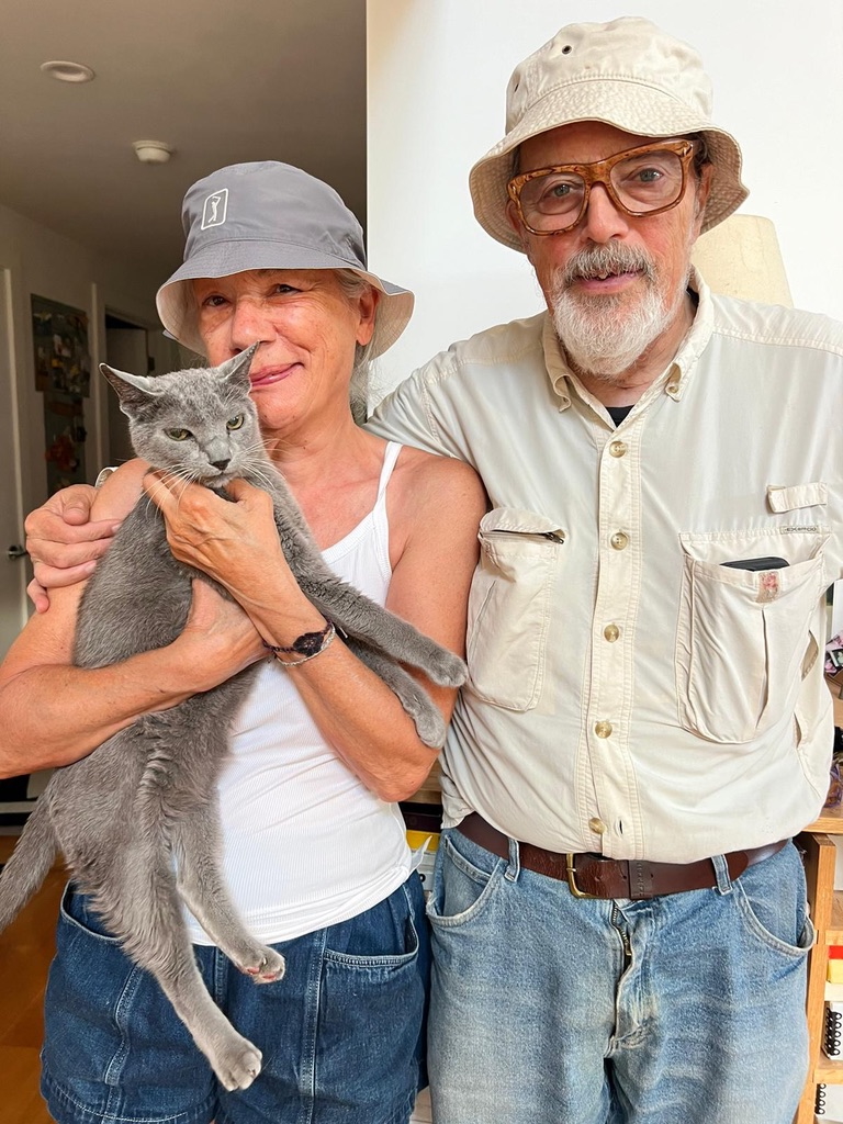 L'intervista si è svolta via Zoom, alle otto del mattino ora di New York. Doveva essere un dialogo a due, e già questo era un'impresa: Gilden è uno di quelli che quando parla parte in quarta, sempre sulla difensiva, pronto a smontare la domanda prima ancora che sia terminata la frase. È finita invece per diventare qualcosa di più strano e, in fondo, di più vero: una conversazione a più voci - lui, la moglie Sophie Darmaillacq, ex giornalista di Libération, francese, con una forte personalità e un'opinione su tutto, compreso il marito, soprattutto il marito - e un quarto partecipante non annunciato, che a un certo punto si è fatto sentire con insistenza crescente dal fuoricampo. Quando è entrato in scena, ha smesso subito di lamentarsi.