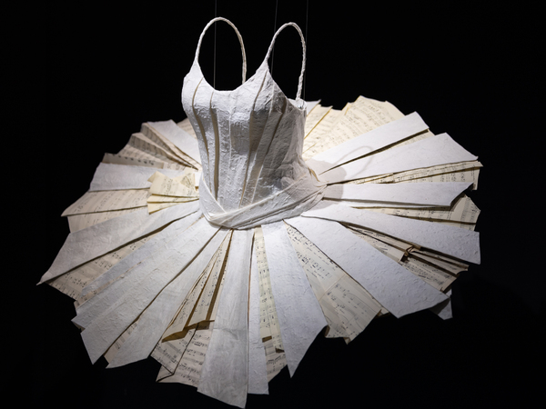 “Con un'attenzione particolare al riutilizzo di materiali cartacei di uso comune - dice la curatrice Maria Savarese - l’artista predilige l'ironico gioco della metamorfosi, della loro trasformazione in tessuti preziosi, rielaborazioni fantastiche del mondo che ci circonda in forme di abiti vuoti, “disabitati”, che conservano, però, quasi come crisalidi svuotate, la memoria di corpi di immaginarie donne che li hanno indossati”.