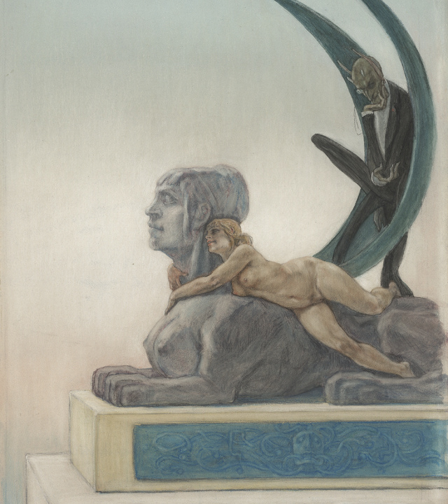 Félicien Rops, Le Sphinx, 1882, Guazzo, acquerello, matita e matita colorata su carta, 29,7 x 20,4 cm, Fondation Roi Baudouin, courtesy © Kunsthaus Zürich