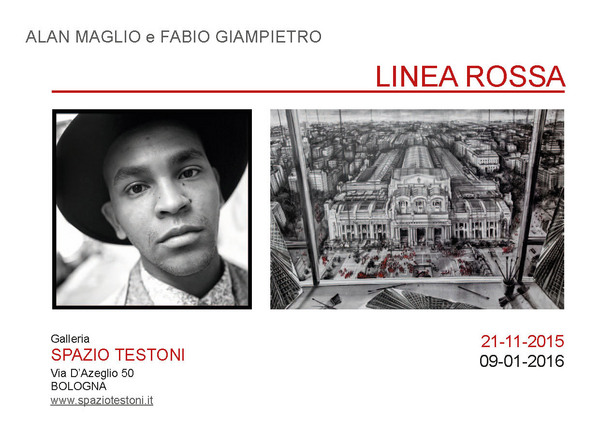 La mostra Linea Rossa di Alan Maglio e Fabio Giampietro, dal 21 novembre 2015 al 09 gennaio 2016 alla Galleria Spazio Testoni... -