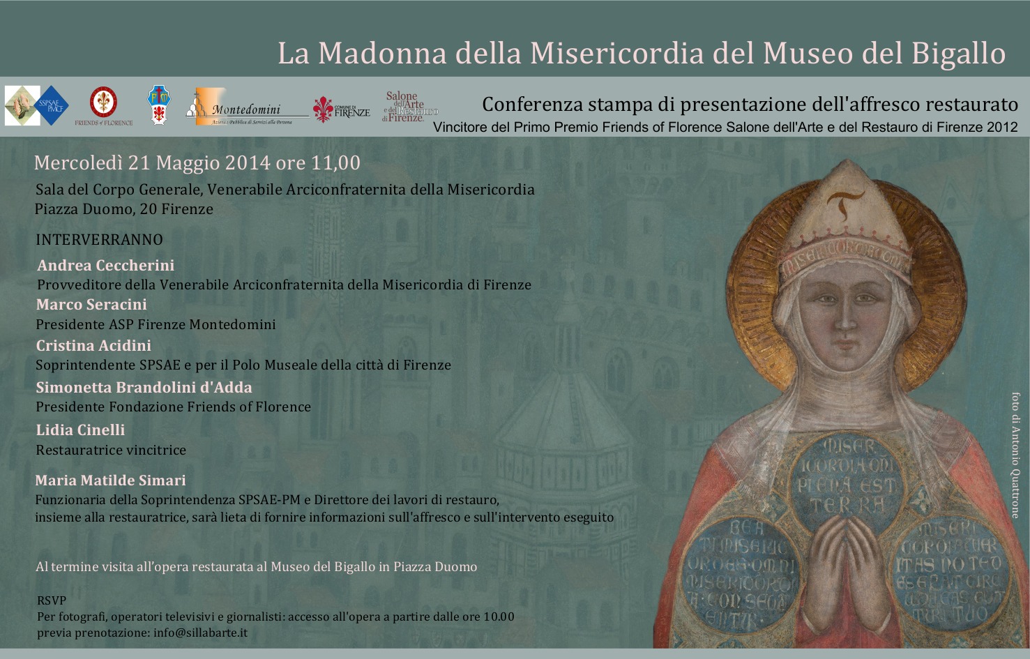 Presentazione dell'affresco della Madonna della Misericordia del Museo del Bigallo, vincitore del primo Premio Friends of Florence Salone dell'Arte e ... -