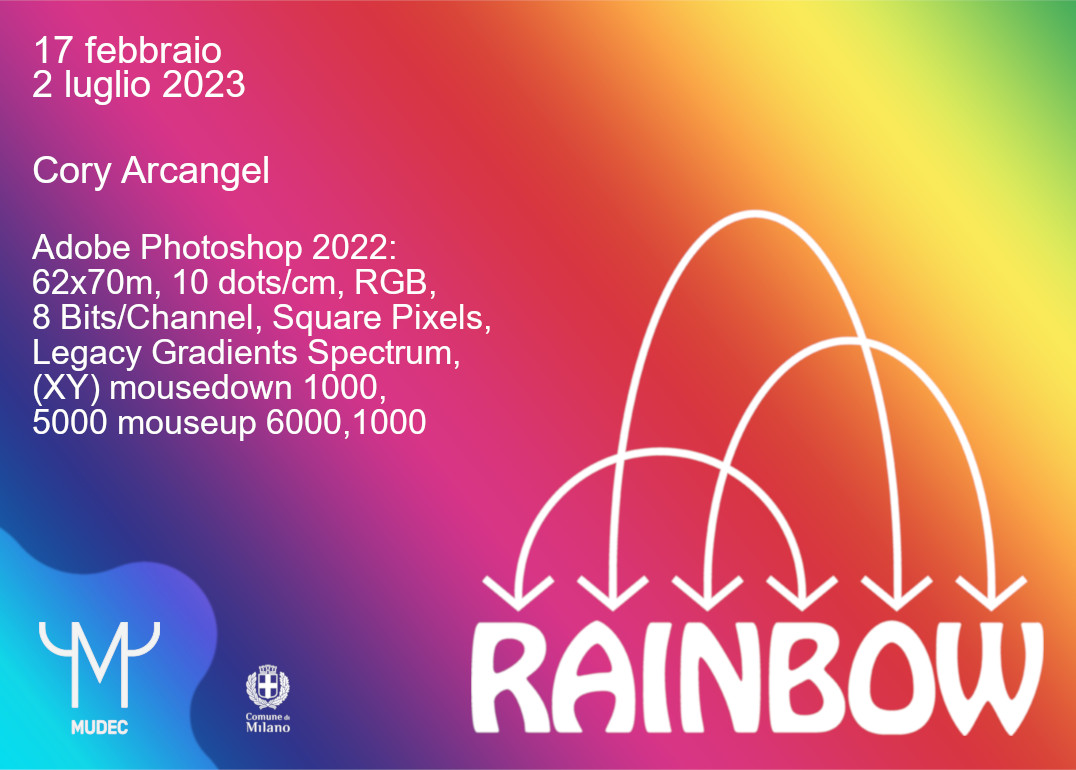 Cory Arcangel. Adobe Photoshop 2022: 62x70m, 10 dots/cm, RGB, 8 Bits/Channel, Square Pixels, Legacy Gradients Spectrum, (XY) mousedown 1000,5000 mouseup 6000,1000