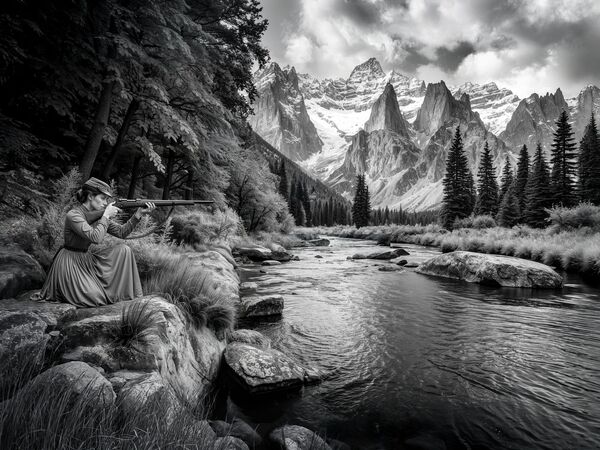 C’è un filo conduttore che lega tra loro le immagini di questo inedito e avvincente racconto. A prima vista sembra quello dell’attesa. In ogni inquadratura qualcosa sta per accadere e l’atmosfera, magistralmente resa dall’artista, è quella della suspense. In una natura selvaggia quasi primordiale, dominata da cime innevate, popolata di conifere, ingentilita da ampie praterie, attraversata da torrenti e laghetti alpini, compaiono soltanto donne e animali. Ogni essere vivente, però, è come congelato in un incantesimo, un epic fantasy, un’epopea al femminile che provoca la pancia e parla alla testa per risvegliare il cuore.