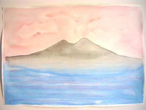 Gli acquerelli in mostra ci presentano un Vesuvio sereno: “I Vesuvi sono quelli che, bambini, si costruivano al mare con la sabbia, quelli che... -