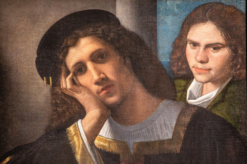A Palazzo Barberini il dipinto entra in dialogo diretto con il celebre Doppio ritratto dello stesso artista, oggi conservato a Palazzo Venezia ed eccezionalmente prestato dal VIVE Vittoriano e Palazzo Venezia nell’ambito di un accordo di collaborazione tra i due istituti del Ministero della Cultura. L’incontro ravvicinato tra i due capolavori permette di osservare da vicino i caratteri innovativi della ritrattistica giorgionesca, fondata su una nuova attenzione psicologica, sulla resa intimista e sulla capacità di suggerire più che dichiarare.